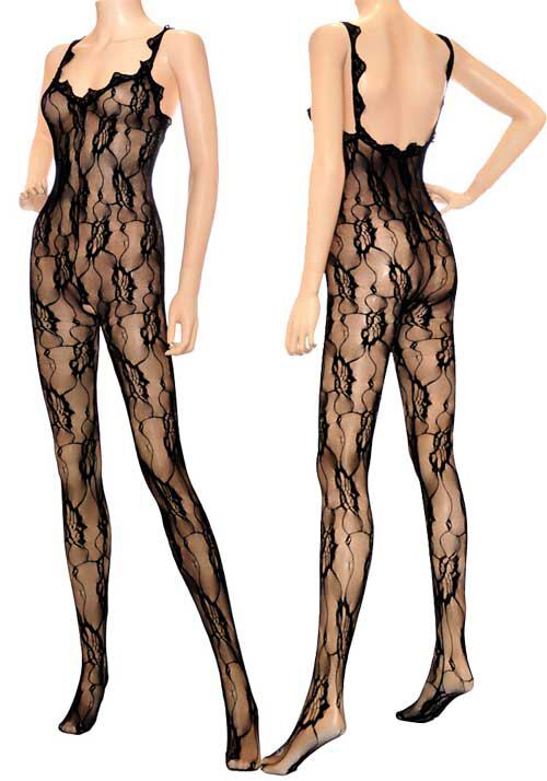 ML1121 黒 総レースセクシーバックボディーストッキング【bodystocking レース・網】フリーサイズ レースネットセクシー パーティ コスチューム | KYOEIボディストッキングSHOP