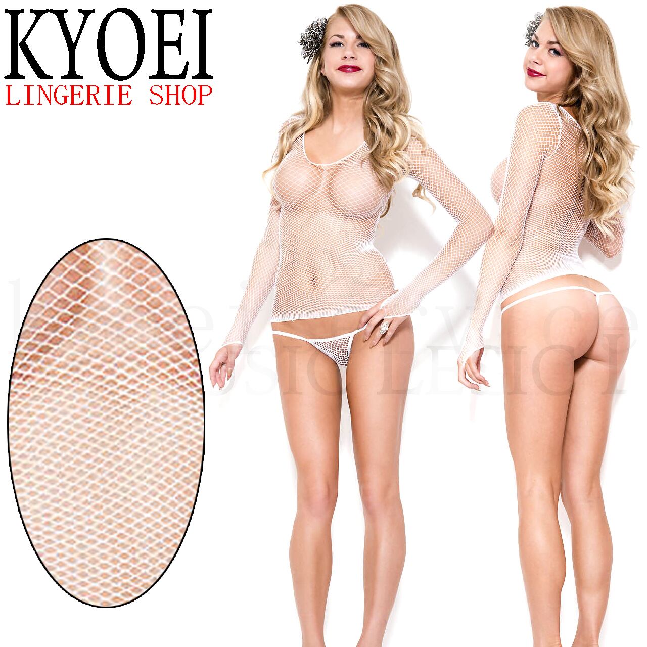 ML9593 白【長袖トップ】フィッシュネット トップ【透けます】【ボディコン】【ミュージックレッグス】【musiclegs ミュージックレッグ】