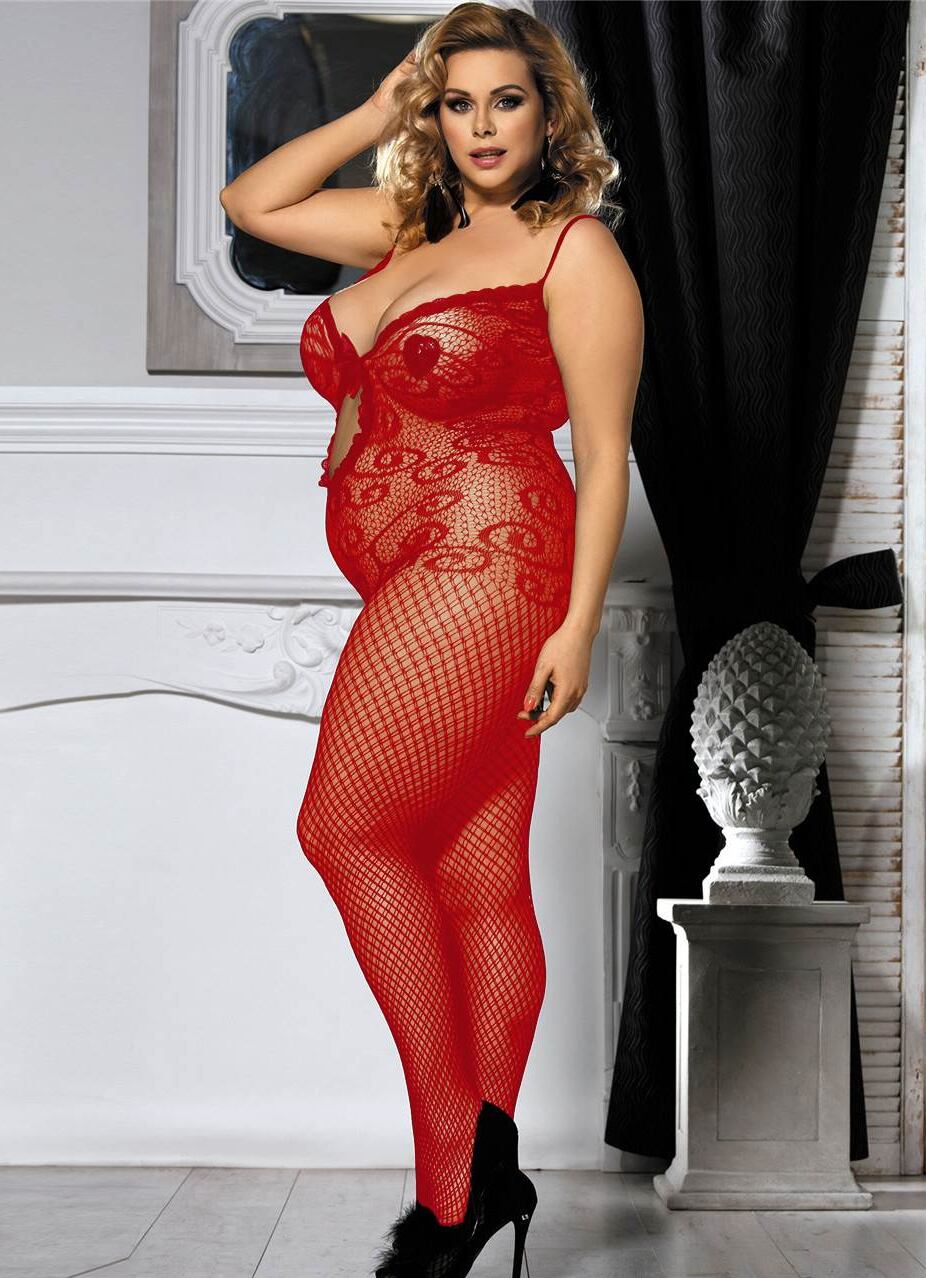 OY3104P 赤【大きいサイズ】テディ風 デザインネット ボディストッキング【ボディストッキング】【プチプラ】【bodystocking レース・網】【OY】 | KYOEIボディストッキングSHOP