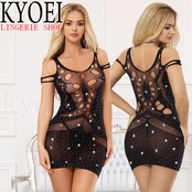 OY3533 黒/ラインストーン キラキラストーン付き デザイン ボディコンドレス【ボディストッキング】【プチプラ】【bodystocking レース・網】【OY】 | KYOEIボディストッキングSHOP